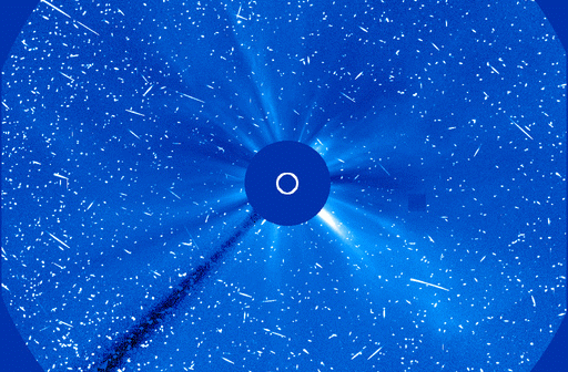 The following photos from the SOHO space observatory shows the "snow" impacts of Protons on the Camera's CCD. When these Protons impact the non-radioactive Cesium 133 in the upper atmosphere they will spall out a host of radioactive iodines. The Cs-133 comes from the decay of Xenon-133 gas. Xe-133 is one of the primary most plentiful components of the fallout from Fukushima